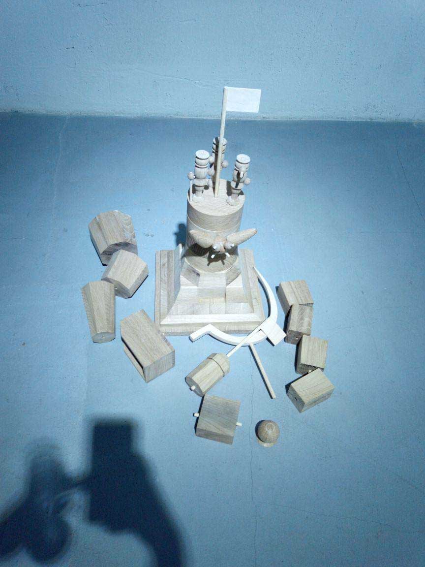 Сегодня проект Ербосына Мельдибекова можно увидеть в Москве, на открытой площадке музея современного искусства Garage. Это тот же конструктор с меняющимися элементами, но высотой 4,5 метра. Насадки в виде частей разных памятников меняются в соответствии с составленным автором списком советских, казахских, киргизских, российских, таджикских, туркменских и узбекских государственных праздников.