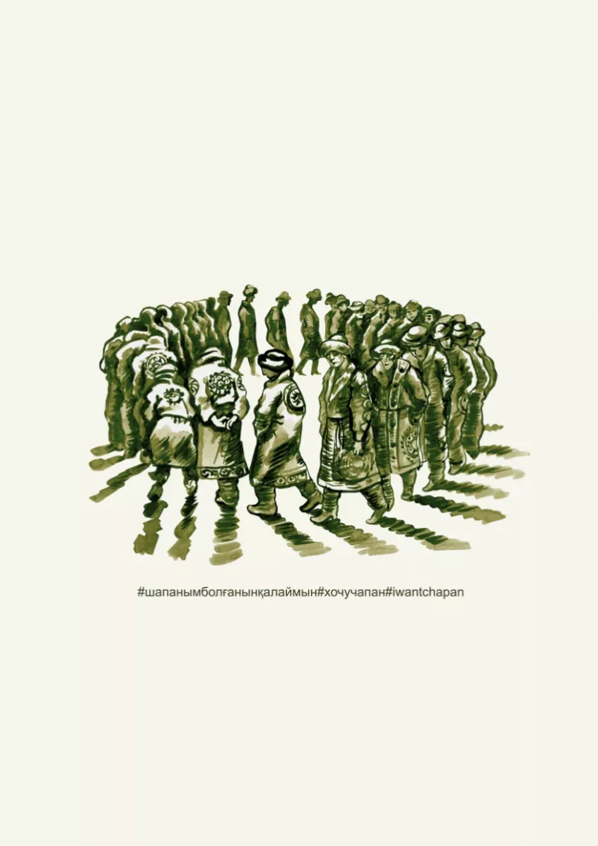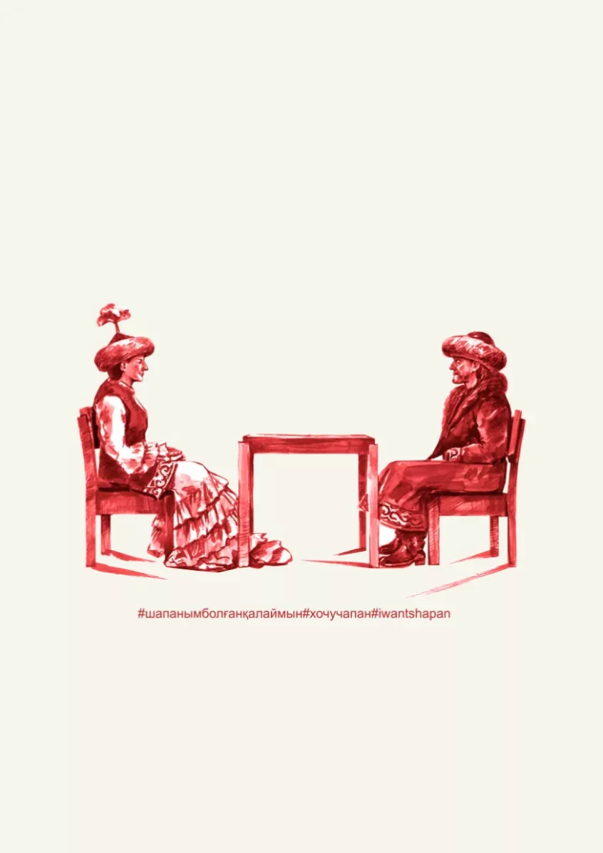 В ▷2017 году в столицу Казахстана приезжает сам Николас Кейдж – не самый большой талант Голливуда, а к тому же еще и племянник великого Фрэнсиса Форда Копполы посещает нашу страну в рамках кинофестиваля Евразия. На одном из пресс-мероприятий на актера надевают традиционный казахский чапан, после чего фотографируют рядом с тогда еще первой леди Сарой Назарбаевой. Лицо Кейджа стремится к безмятежности, но некоторое его удивление все-таки проскальзывает в мимике, и фотография быстро становится мемом и разлетается по казнету, а художница Сауле Дюсенбина задумывает свою, пожалуй, самую известную серию Хочу Чапан.