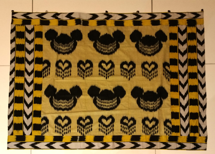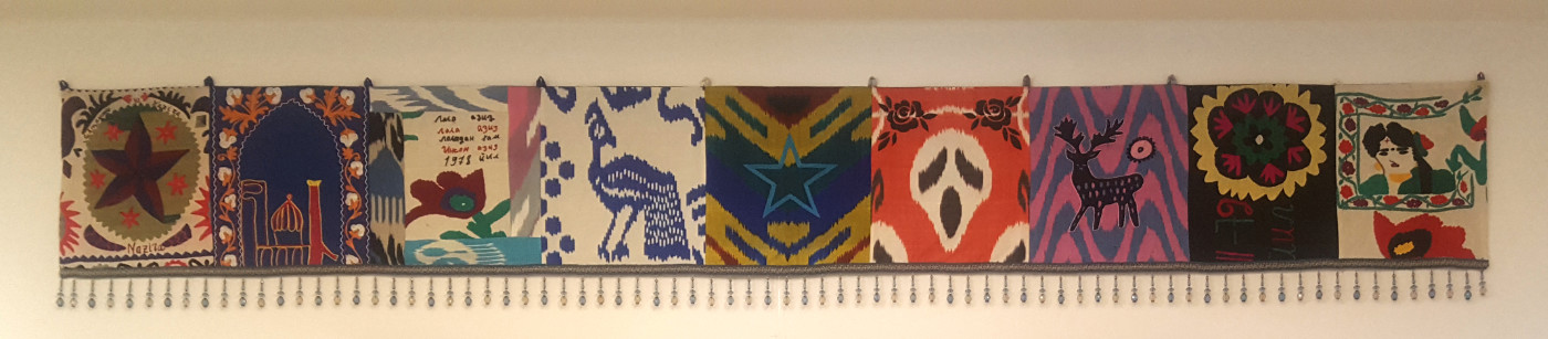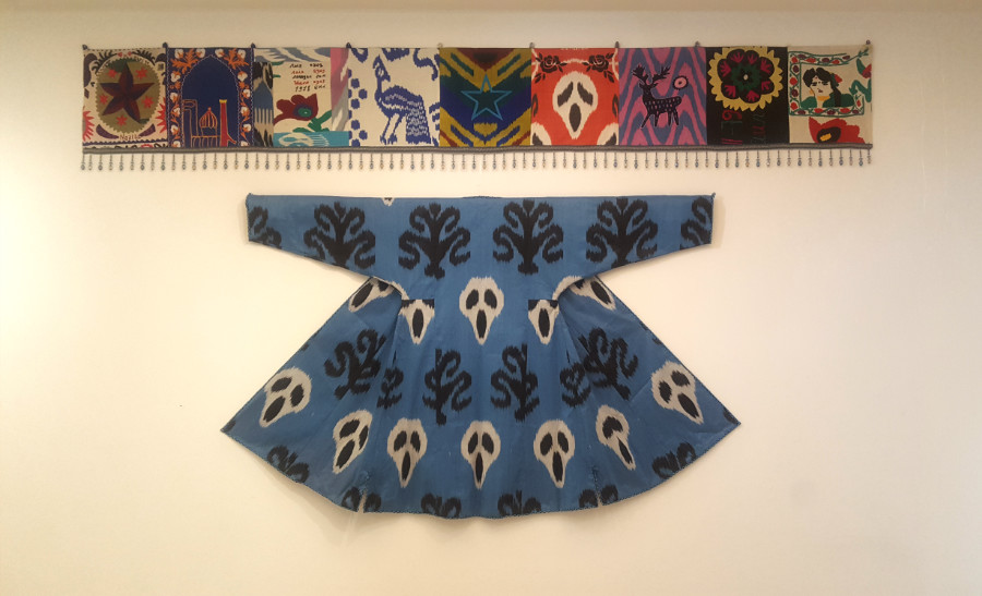 Диляра Каипова – художница из Узбекистана, чье творчество лежит в поле исследования народного и прикладного искусства и того, как оно трансформировалась в колониальных, советских, капиталистических условиях. Чапаны, выполненные в традиционной технике «икат», но с изображением поп-культурных персонажей — маска «Крик», инопланетяне, символика Бэтмена и Супермена, Микки-маус), вышивки с изображением Максима Горького, серпа и молота, персонажей индийских фильмов, вплетенные в типичные для региона орнамент — Каипова собирает и формирует в яркие парадоксальные коллажи, показывая сложный смешанный характер народной культуры Центральноазиатского региона.