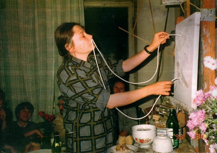 Елена Воробьева, художница, работающая в тандеме с Виктором Воробьевым. Их знаковой работой стала инсталляция «Базар» (1999-2000-е), в которой они отразили смену эпох. Работа включает в себя три пласта: предметы, купленные на толкучке (блошинные рынки стали активно появляться в 90-е), фотографии этих предметов, снятые до покупки, и комментарии продавцов, у которых художники в итоге эти вещи купили. Среди предметов, которые люди выносили из домов: невыкуренные пачки сигарет, выцветшие портреты звезд советской эстрады, эмблемы и награды, марки, труды коммунистических вождей, денежные купюры и монеты, потерявшие ценность.