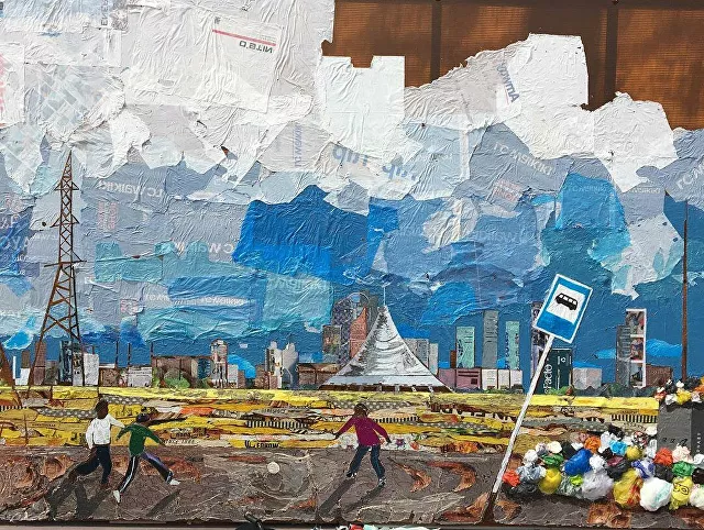 Панно Сулейменовой – это тот самый пластиковый мир, в котором мы ныне живем. Это яркая, «красочная» природа, которую мы видим на рекламных проспектах и телевизоре. Это пластиковые люди, неживые лица офисных работников. Это искусственно созданные очереди на регистрацию внутренних мигрантов – жителей страны