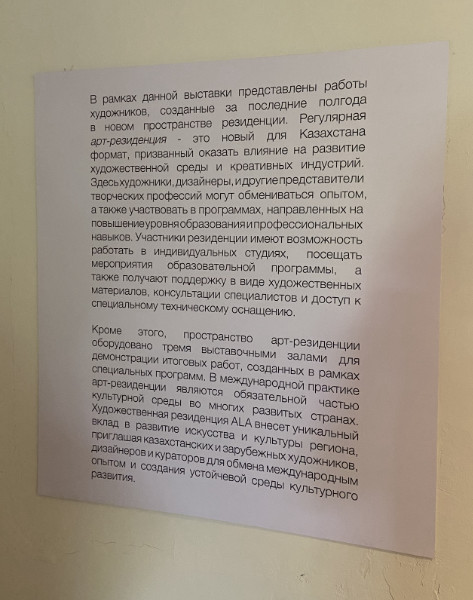 Арт-резиденции нельзя назвать абсолютно новым форматом и для Казахстана, но пока в стране не появлялось проектов, которые бы работали постоянно. Кураторка Дильда Рамазан связывает это с тем, что инвесторы, частные и государственные, не особенно заинтересованы в развитии искусства: